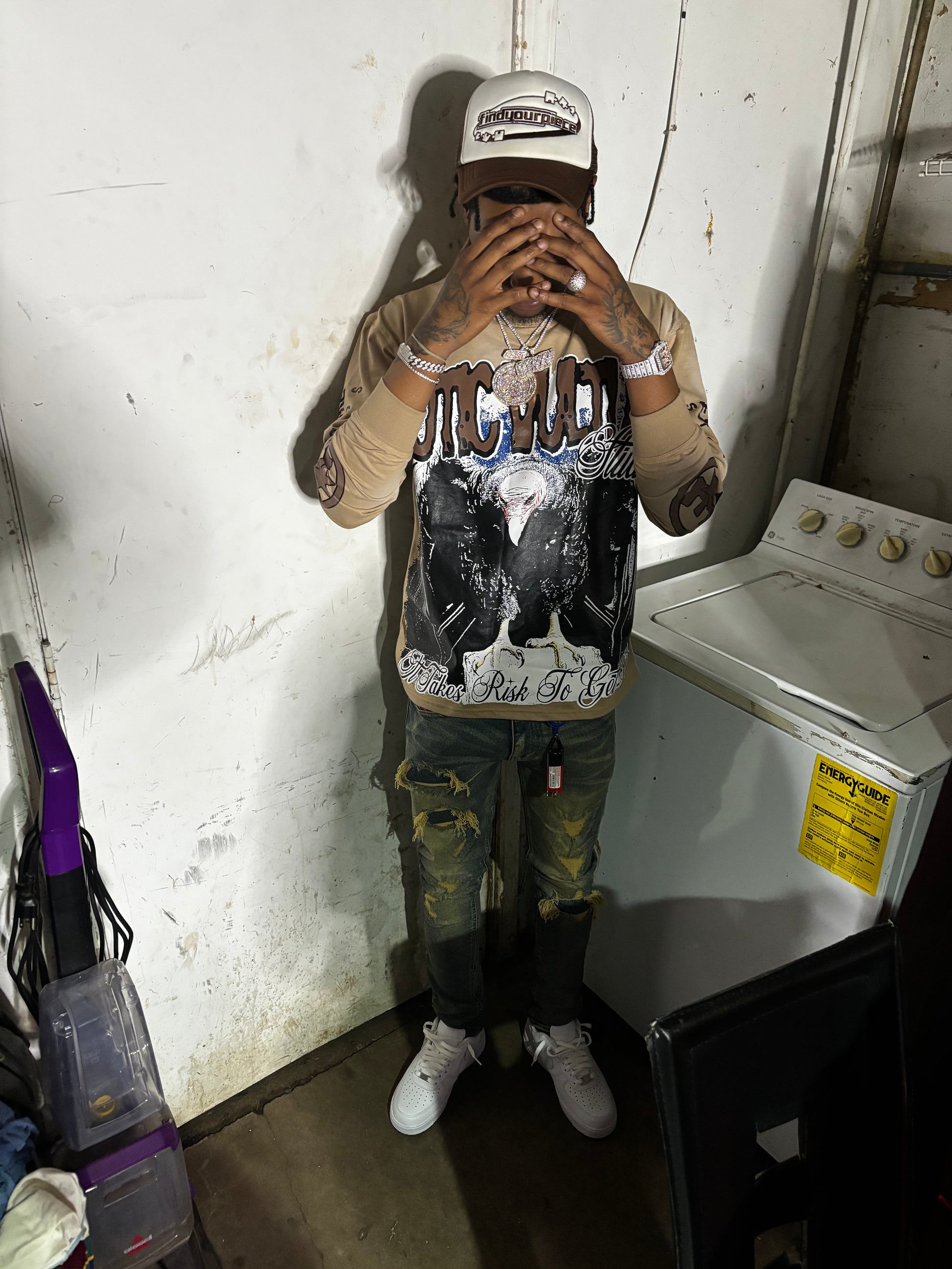 This bold long sleeve from Exotic Vulture fuses streetwear with raw edge. Featuring a menacing vulture graphic, distressed typography, and the powerful motto "It Takes Risk To Get Rich", it's a gritty, Atlanta-born statement piece for those who hustle hard and dream bigger.